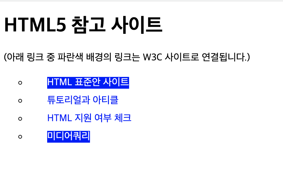 <p>(아래 링크 중 파란색 배경의 링크는 W3C 사이트로 연결됩니다.)</p>