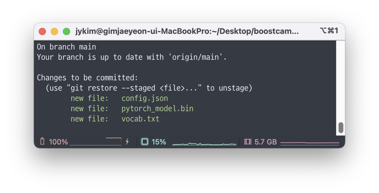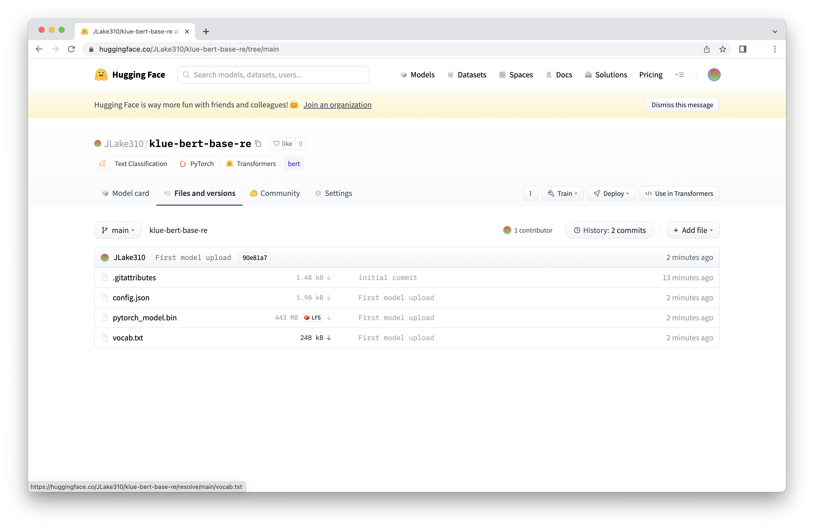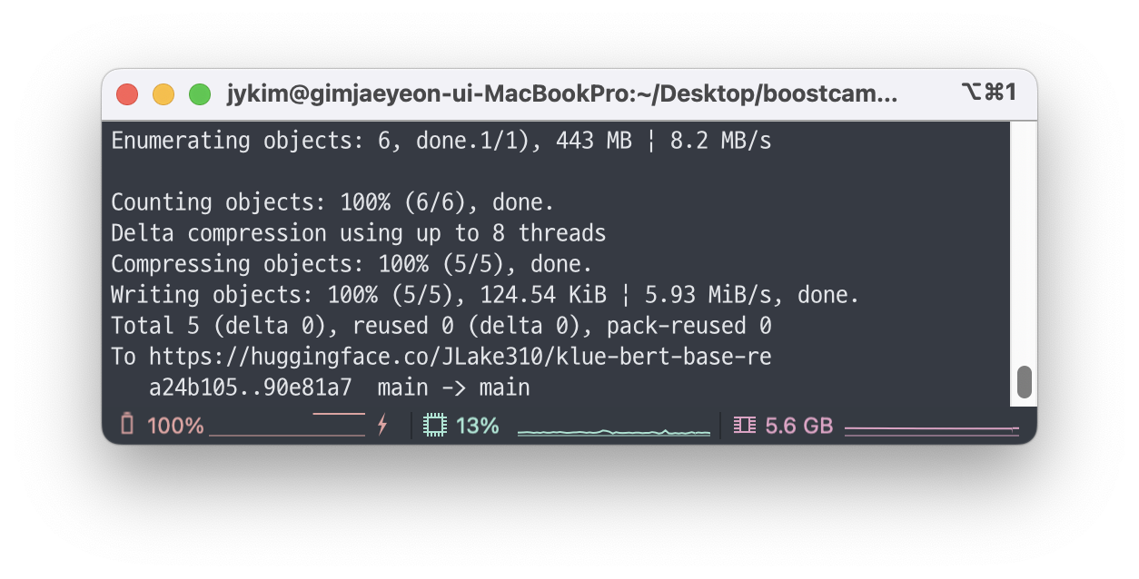 다시 허깅페이스를 들어가보면 모델이 잘 업로드된 것을 확인할 수 있다.