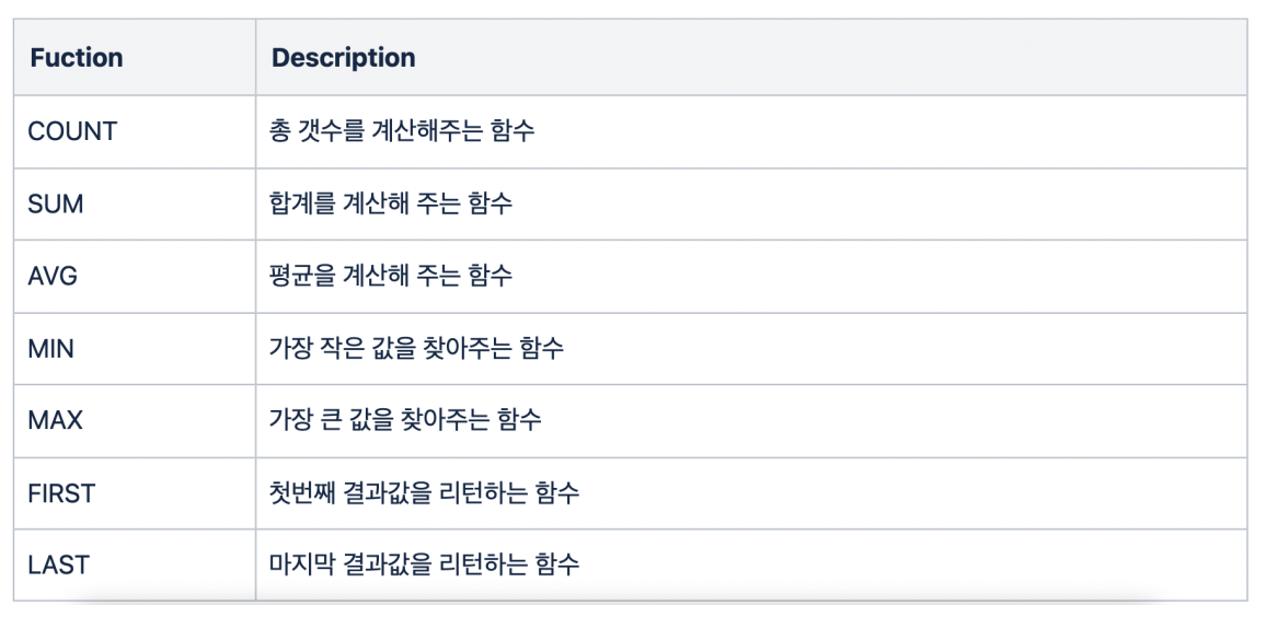 ★ 집계함수는 Select or Group by 에서만 사용 가능!! ★