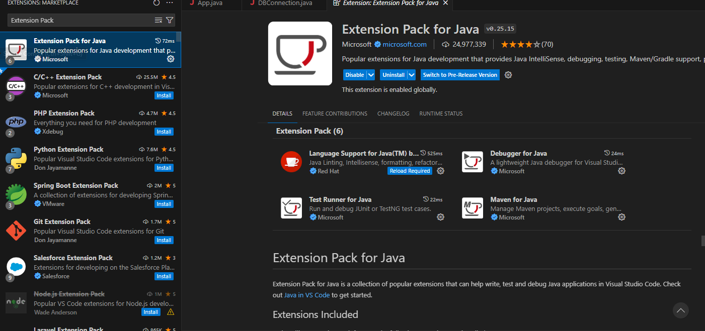 확장팩에서 "Extension Pack for Java"를 설치하자