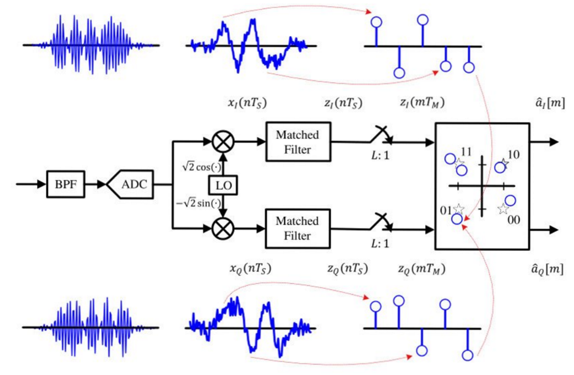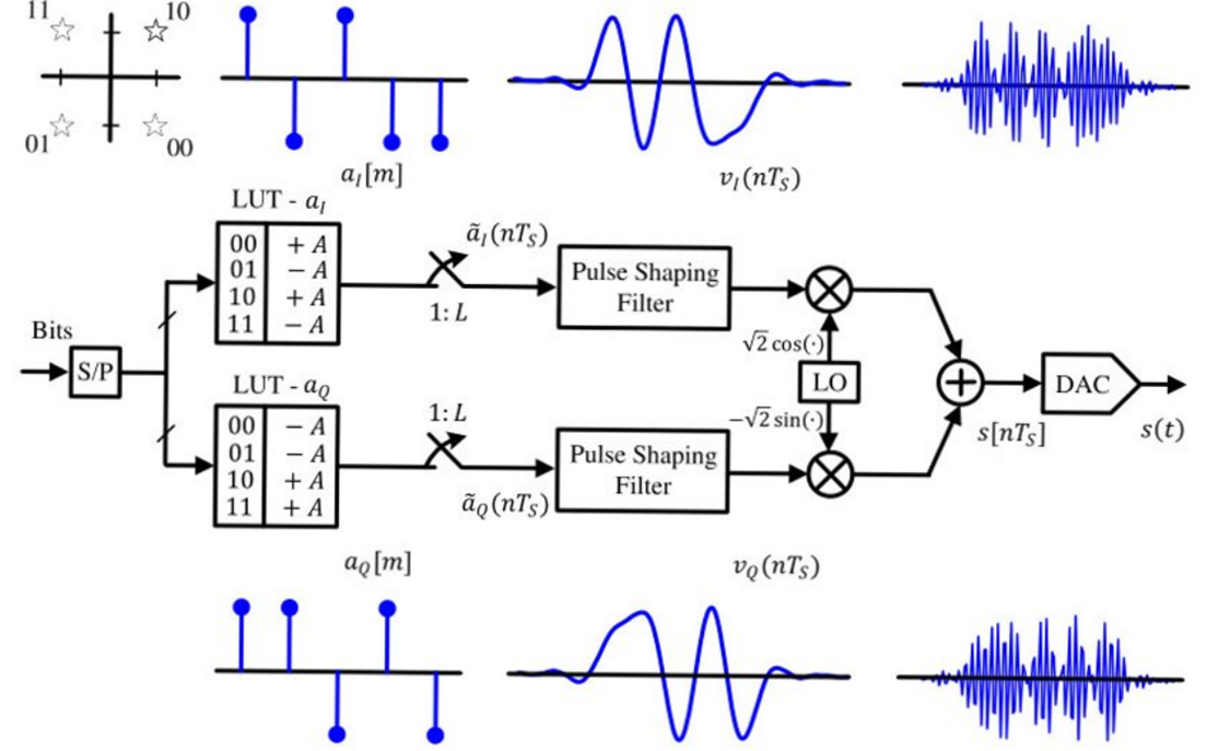 Pulse Shaping 후 출력된 신호 vI(nTS)와 vQ(nTS)는 아래 식 처럼 나타낼 수 있다.