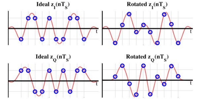 송신부와 수신부의 Oscillator의 주파수 오프셋이 심볼의 위상에 영향을 준다. 아래 그림을 참고해보자.