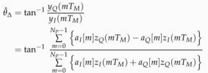 θ△^=∠y(mTM)=∠(m=0∑NP−1a∗[m]z(mTM))