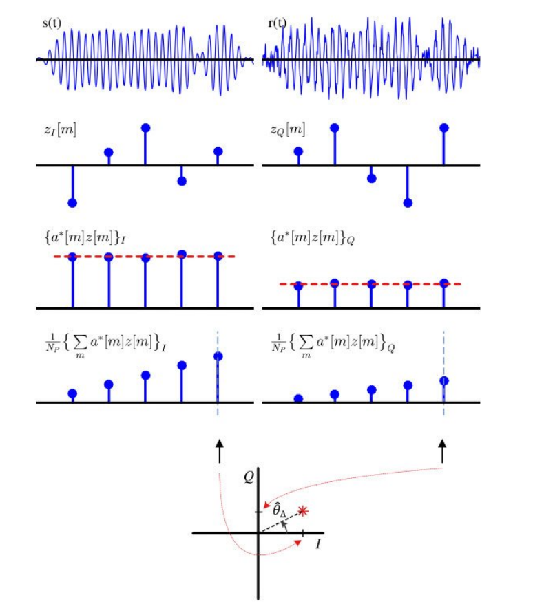 여기서 correlation 결과를 최대로 만드는 θ△^이 추정 carrier phase offset이 된다.