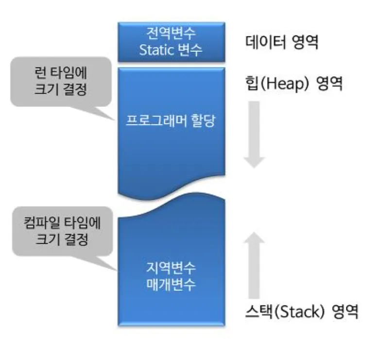 동적 메모리 할당역역이며, 크기가 가변적이다.