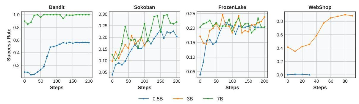 - Multi turn RL을 통해 에이전트의 self-evolution을 이해하고 개선하기 위한 프레임워크, RAGEN (Reasoning Agents through Generative Environments)을 제안