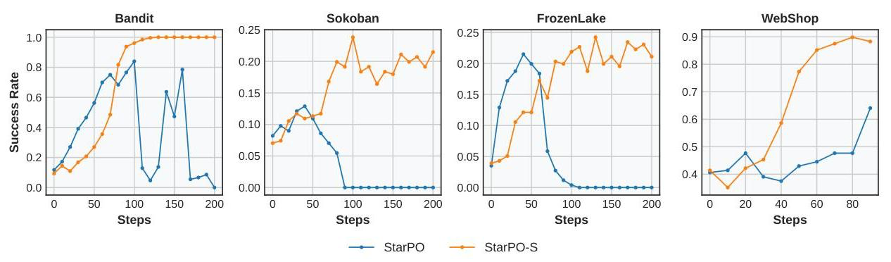 - 이를 해결하기 위해 3가지 안정화 기술을 추가 -> StarPO-S
