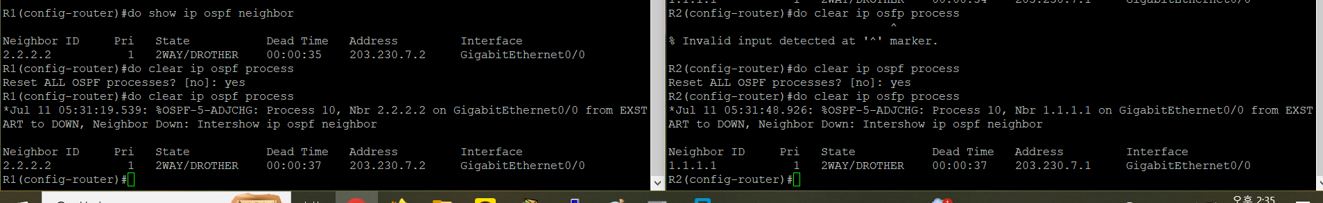 clear ip ospf process하면 ospf가 재시작이 된다
