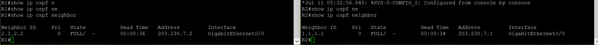 show ip ospf neighbor로 neighbor table을 확인하면