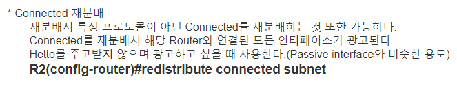 redistribute connect metric 1 1 1 1 1 -> 이거 복습!!!