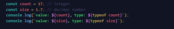 Java Script 에서는 여기 보다시피 type은 정수던 실수던 number 하나다.