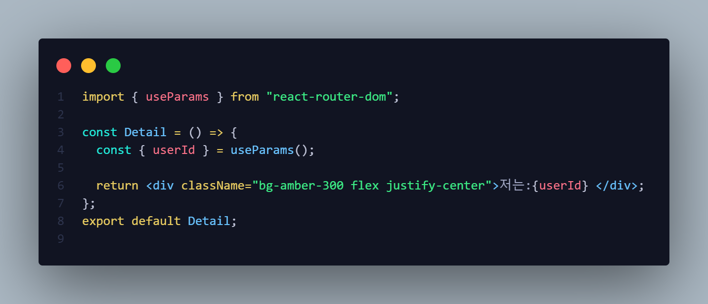 아래에 Detail 경로를 위에 우리가 useParams를 사용향 userId 를