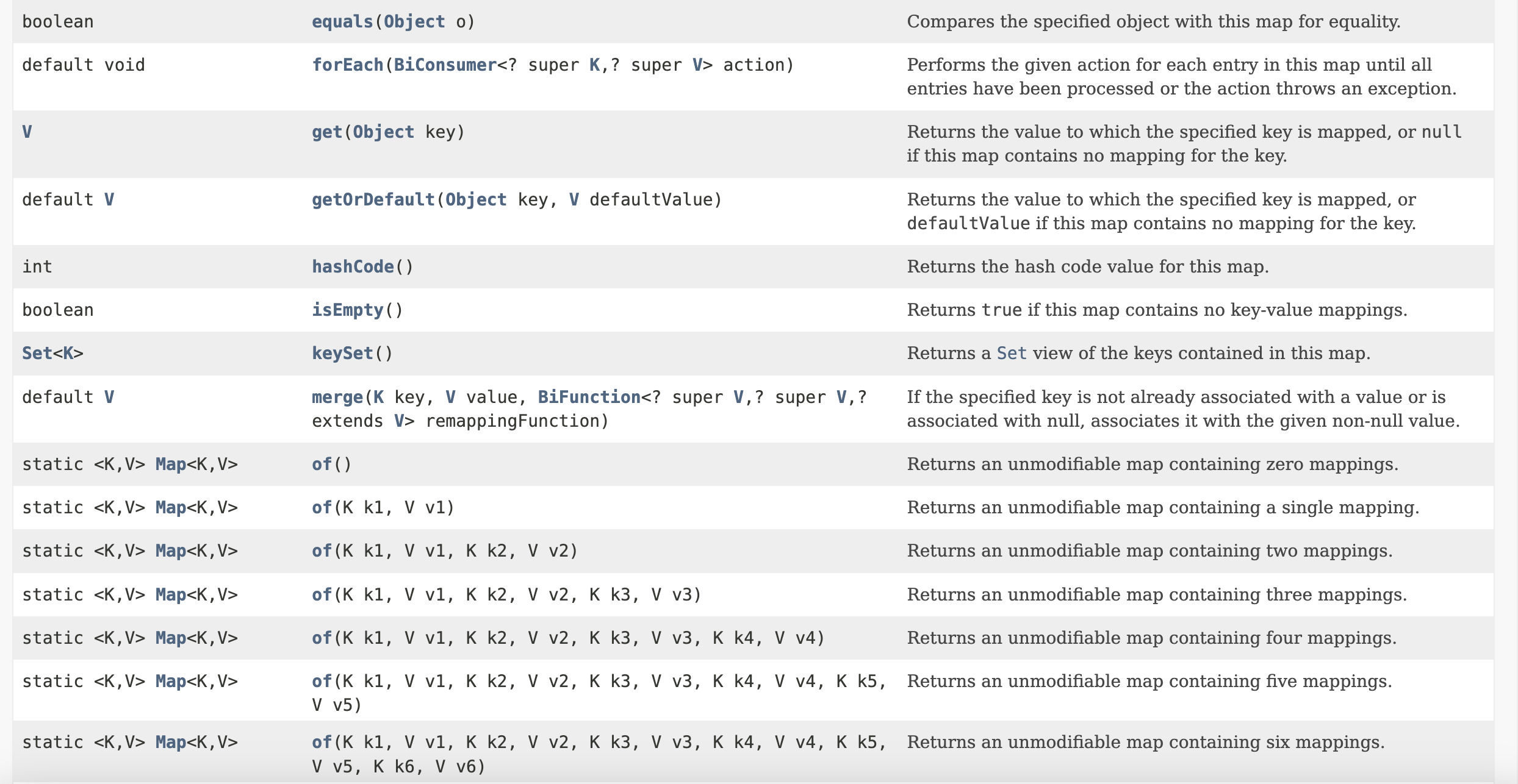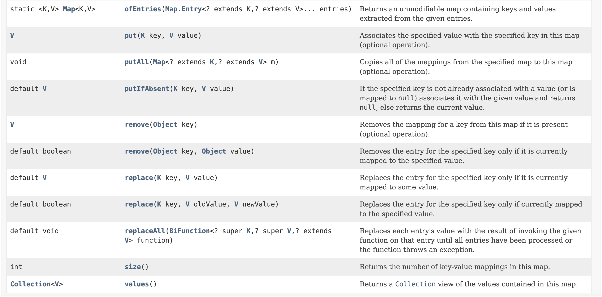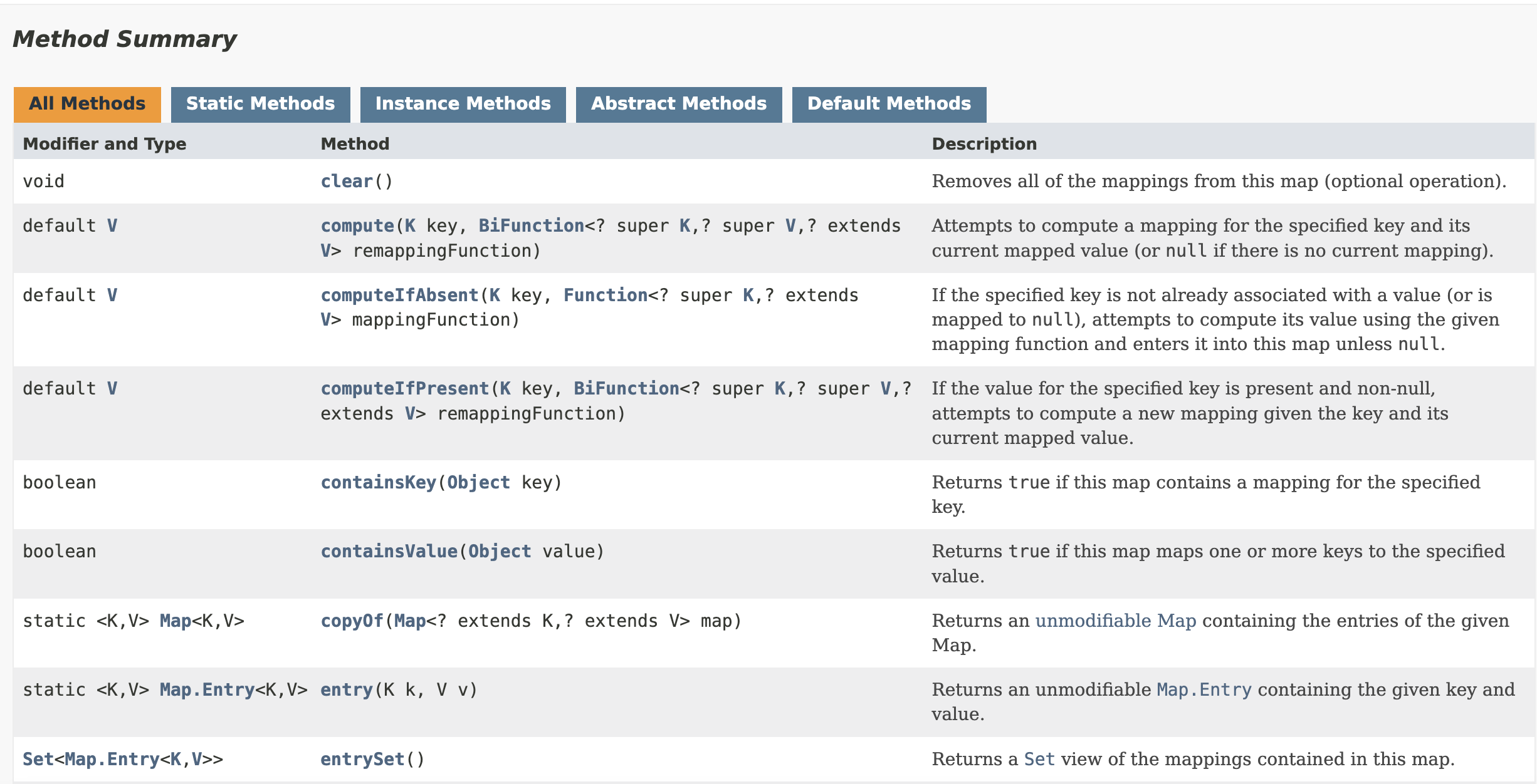 Some methods that are left for individual implementation from the Map classes