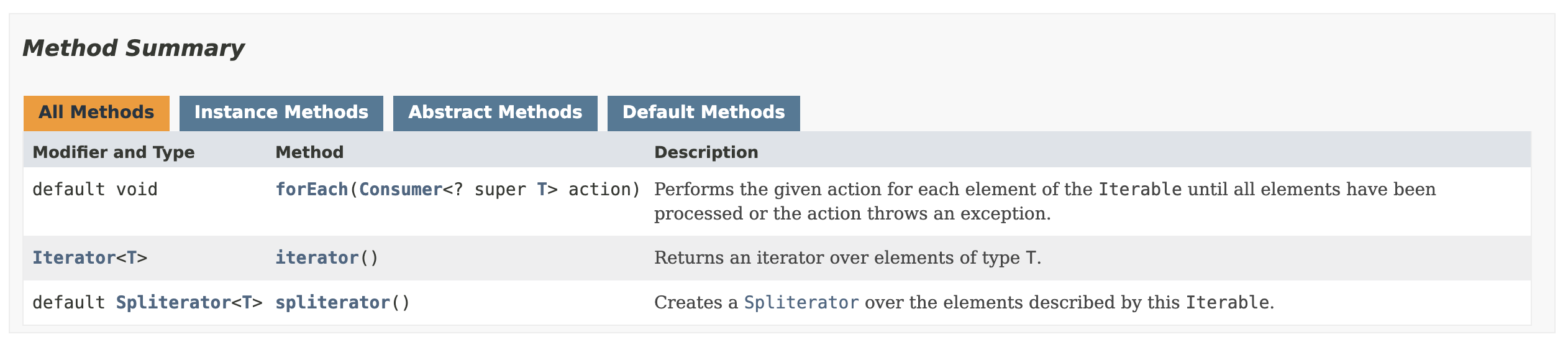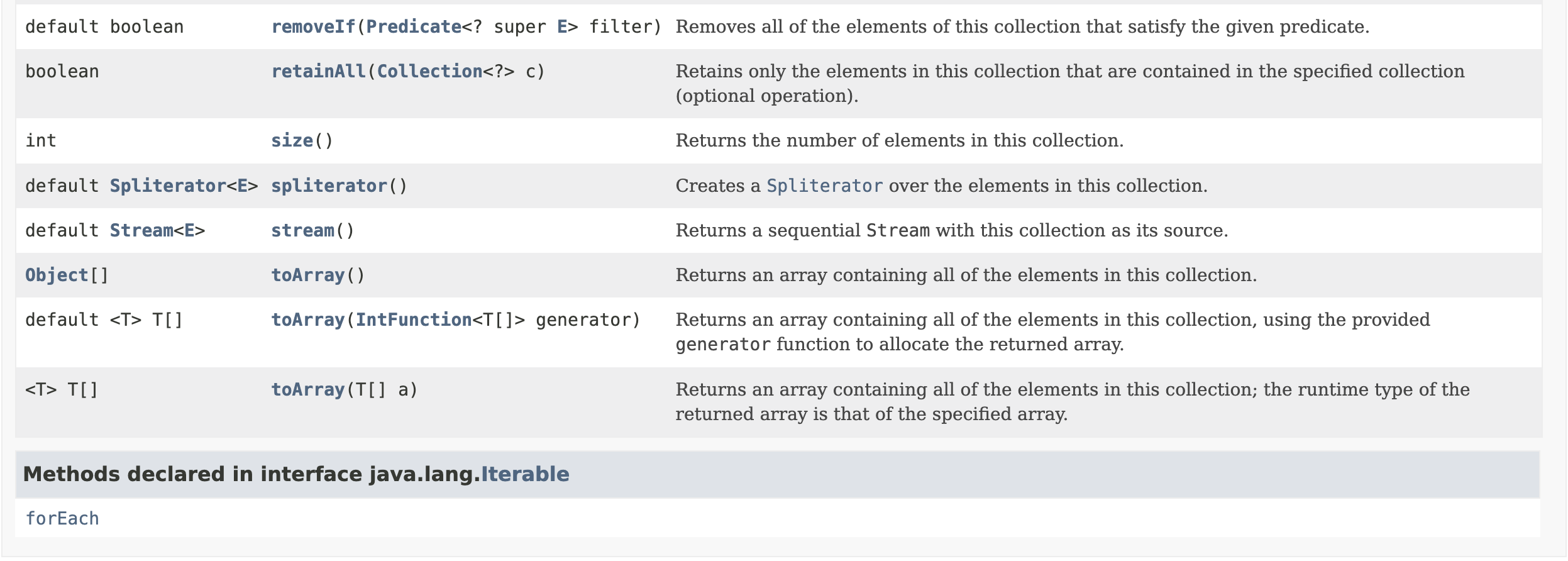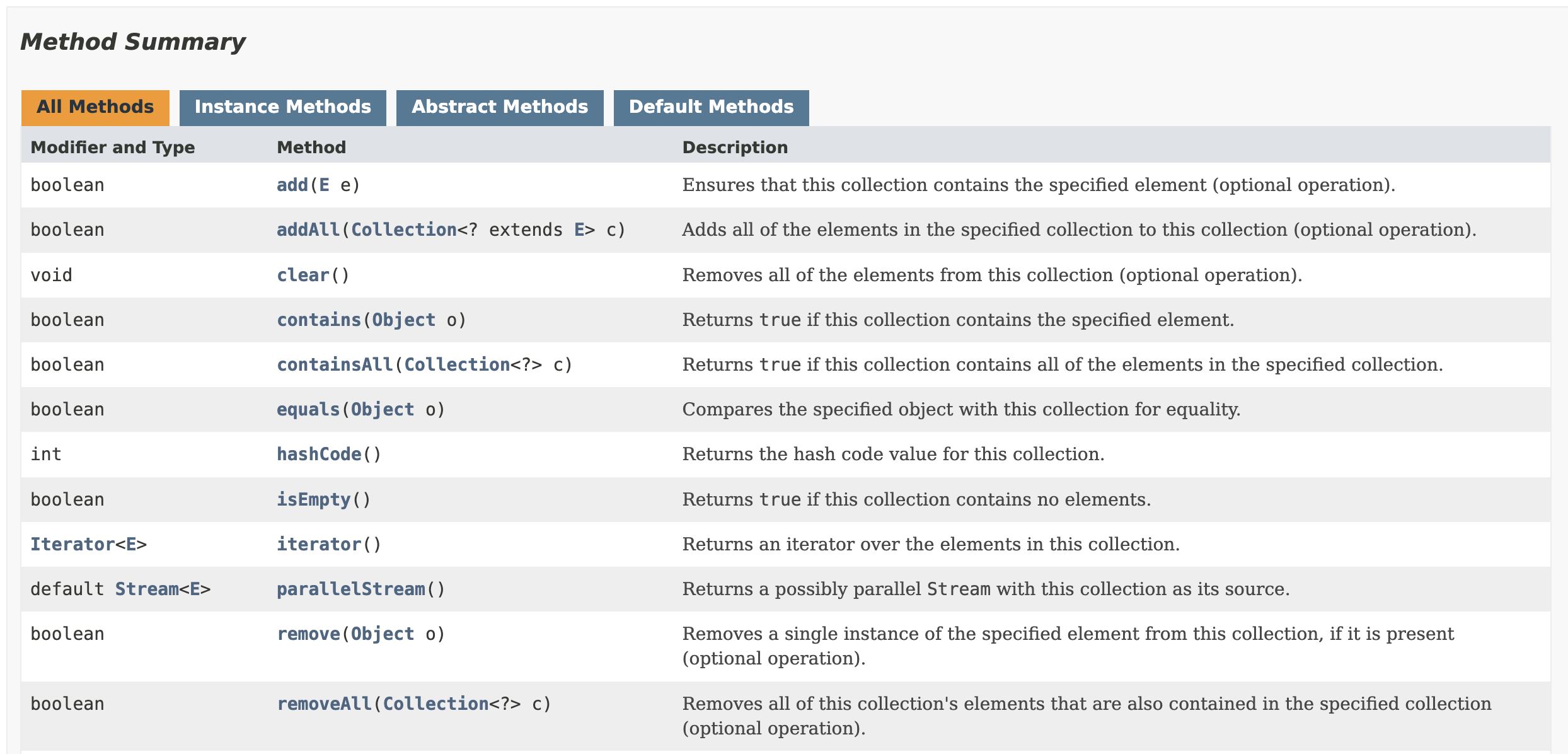 are defined where these methods can be implemented individually in the collection classes