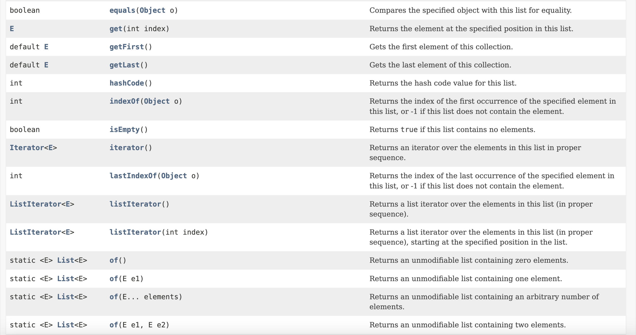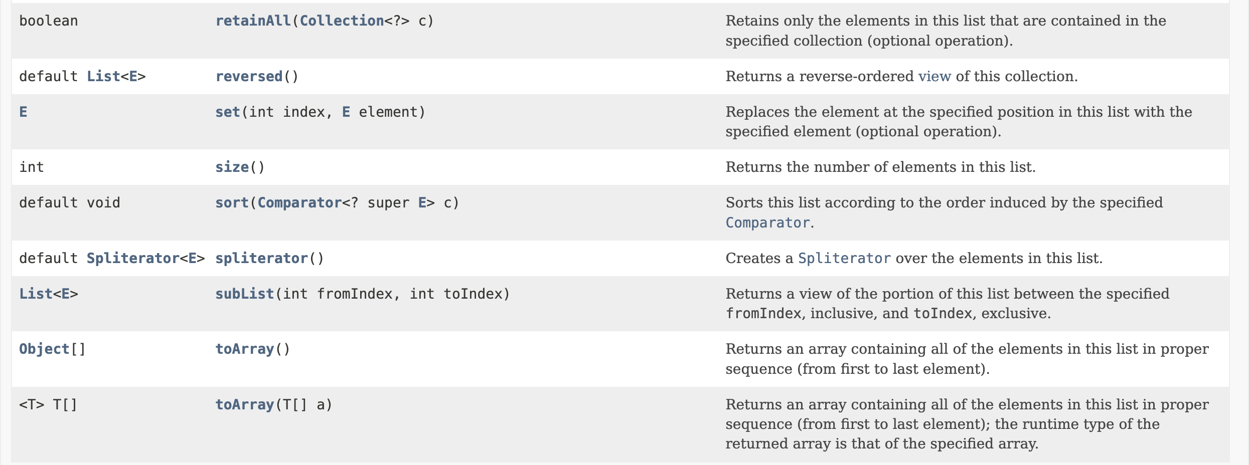 implementing the List interface