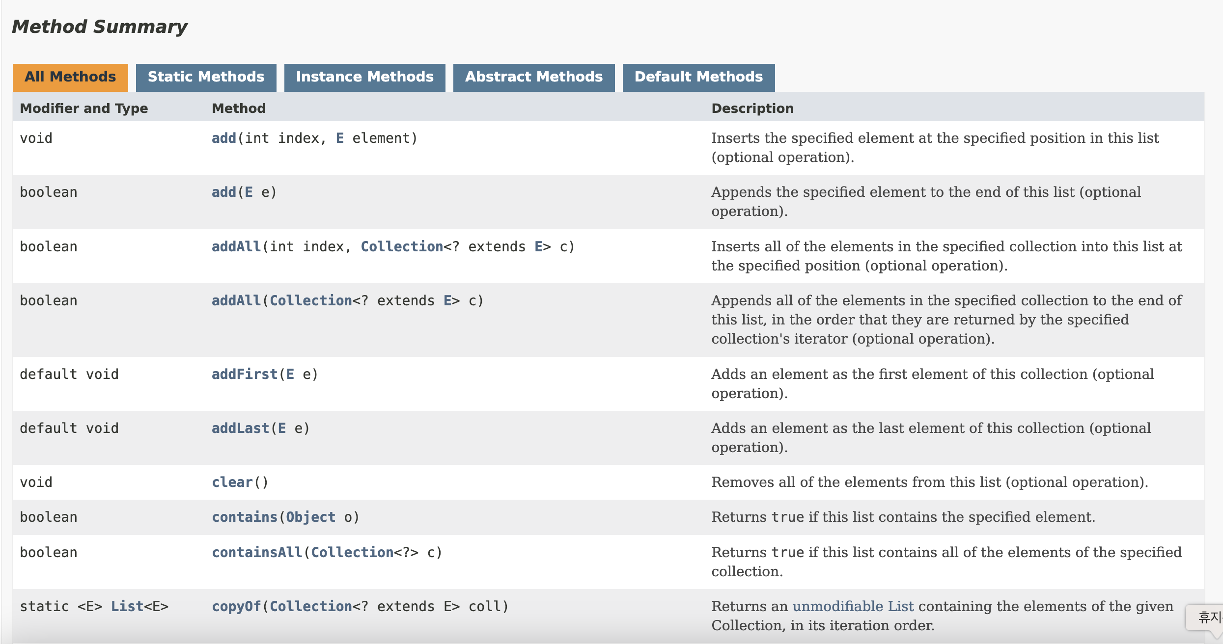 . The beyond is the list of methods
