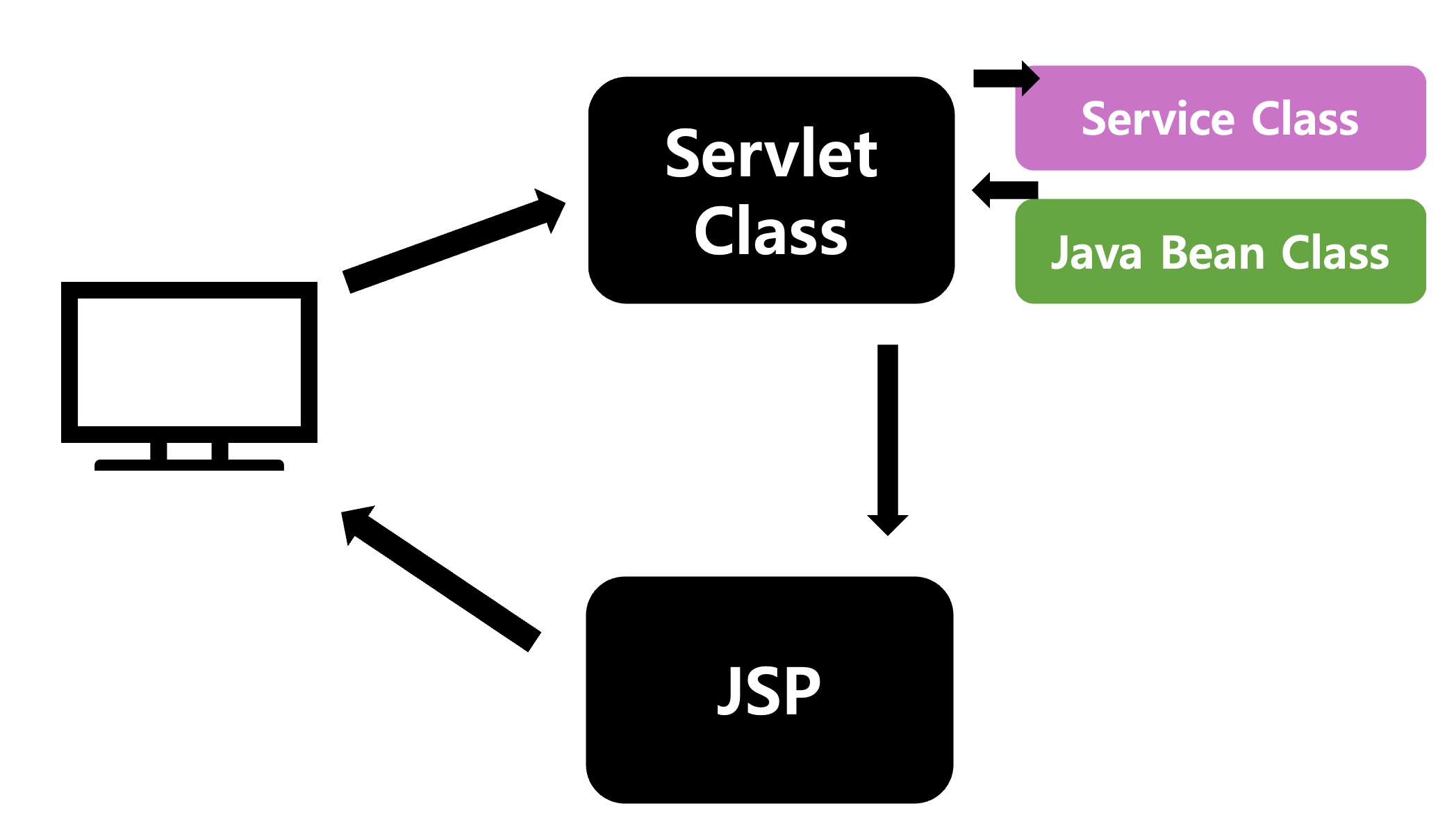 JSP often employed service classes or Java Bean class and it can be visually represented as below: