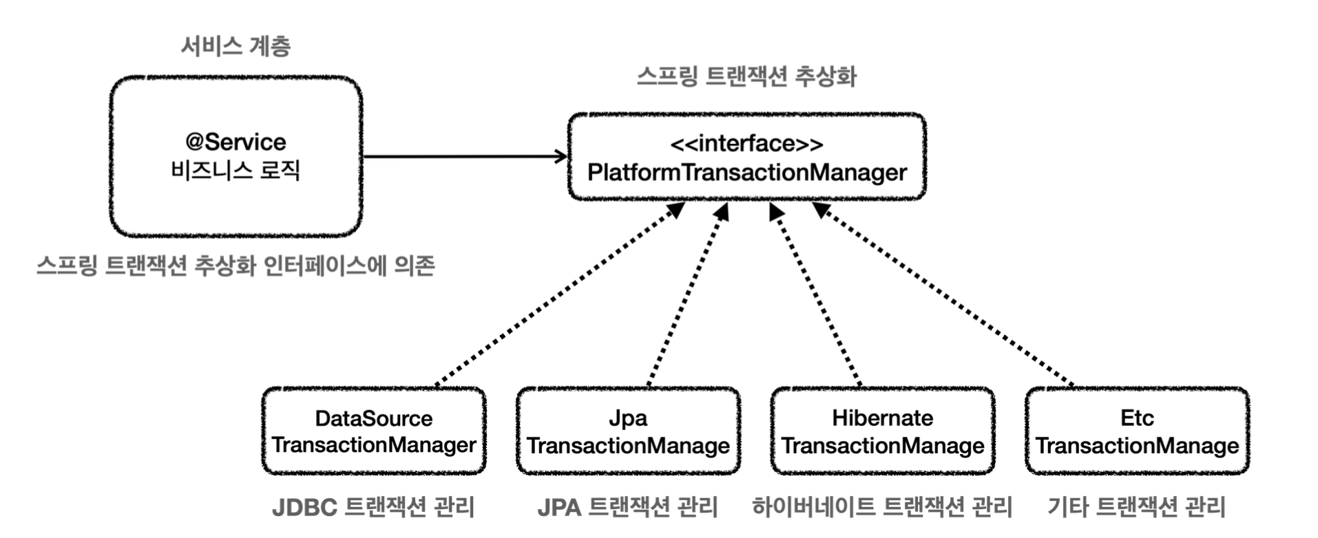achieves this abstraction through the PlatformTransactionManager interface