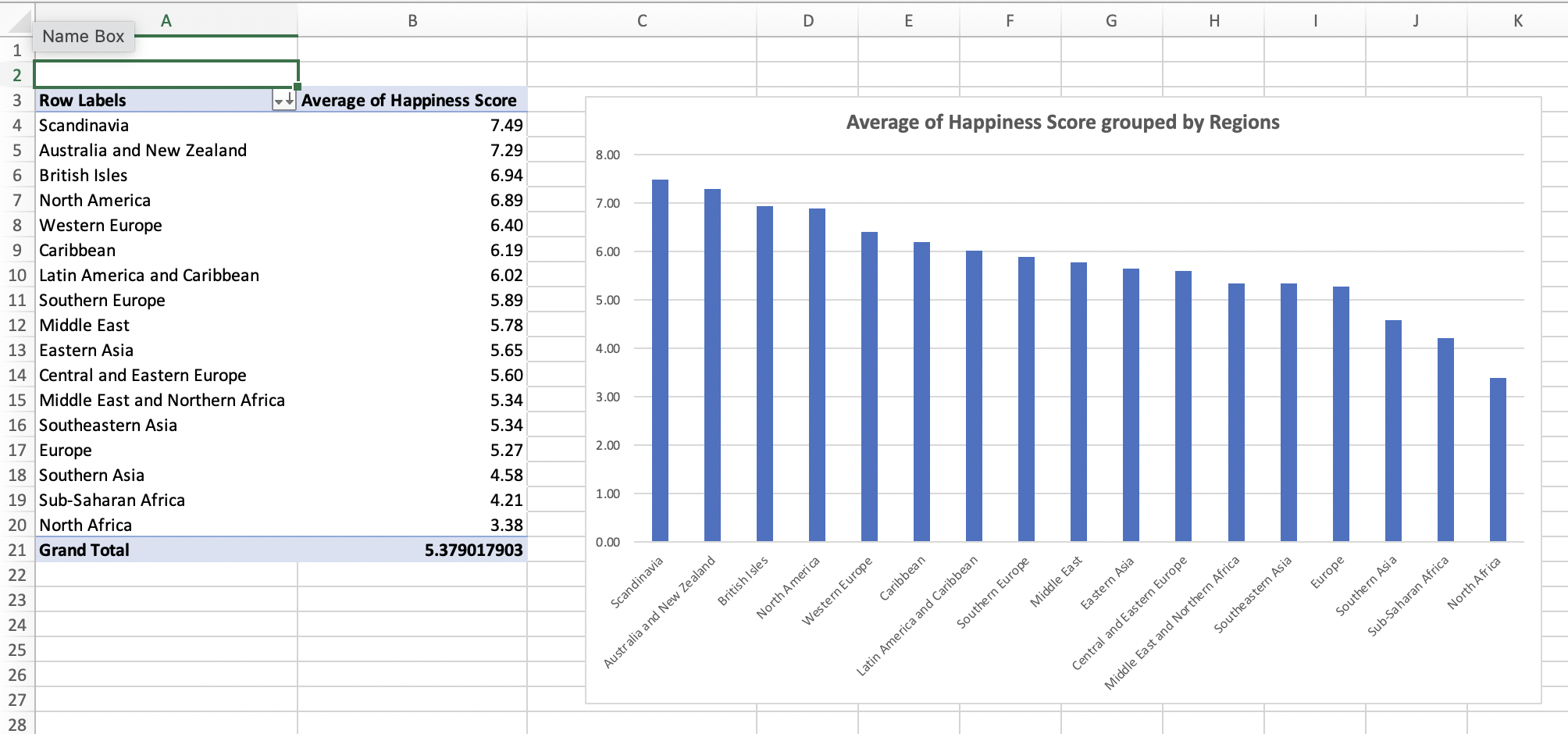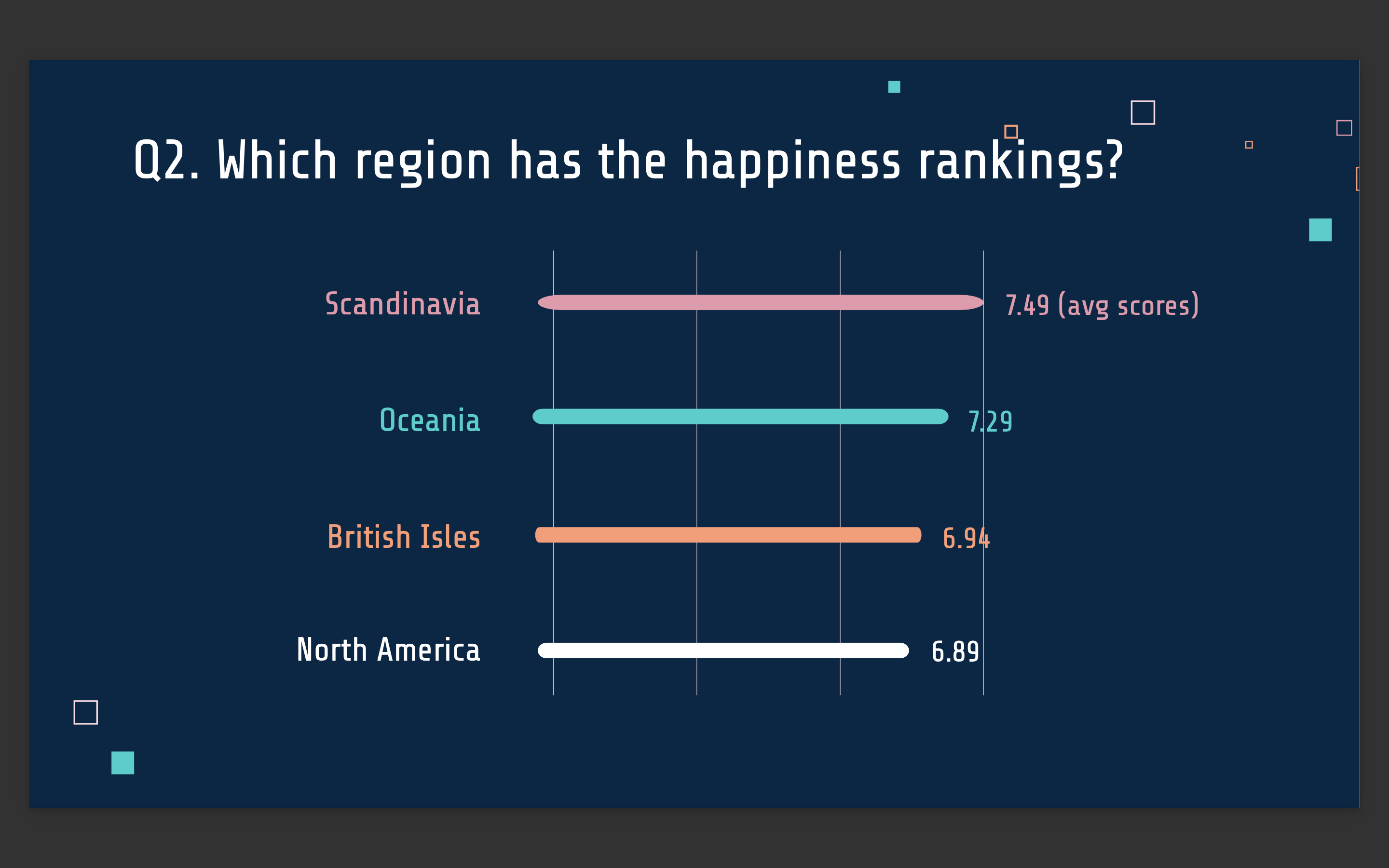Q2. Which region has the highest average happiness rankings?