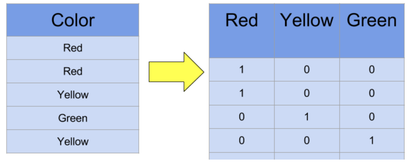 범주형(카테고리컬) 데이터를 행열로 나열해 숫자로 표현해 주는 기법.