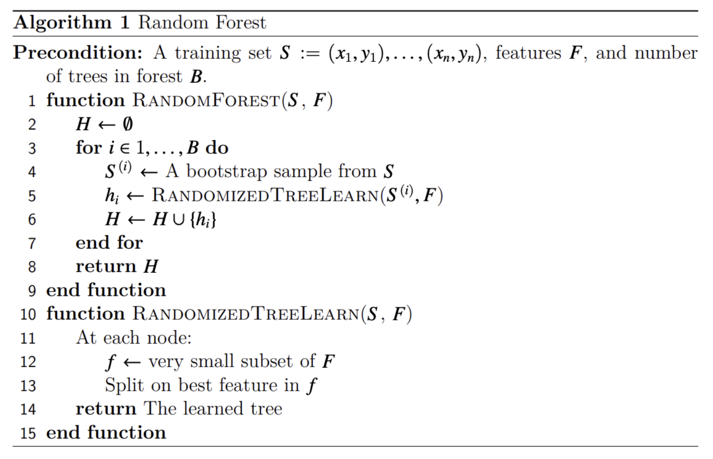 2. 각각 트리는 무작위로 선택된 특성들을 가지고 분기를 수행한다.