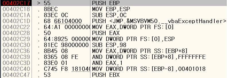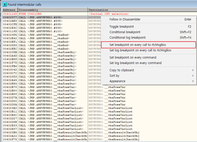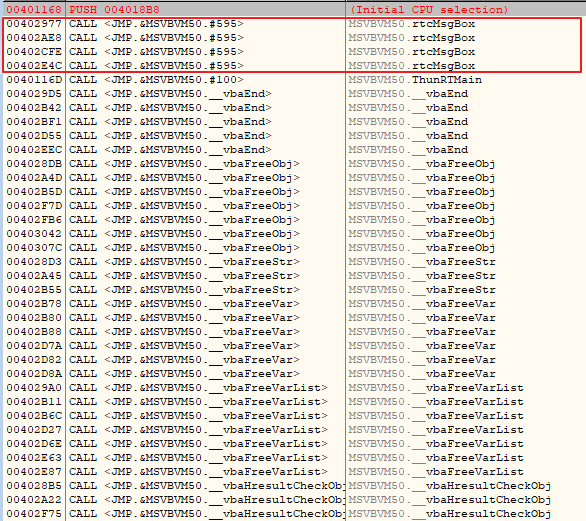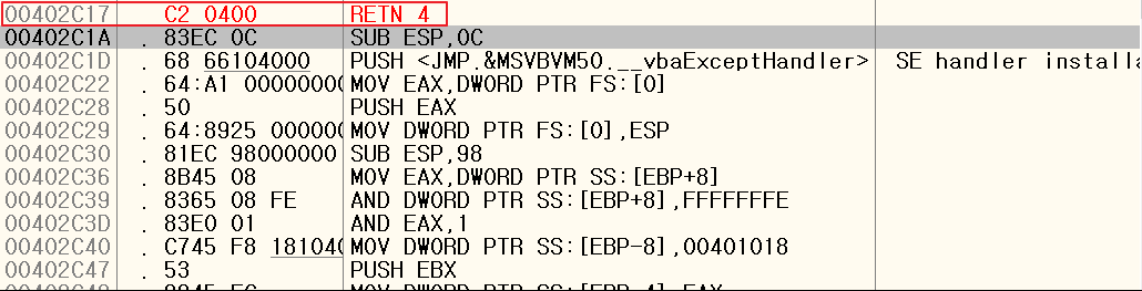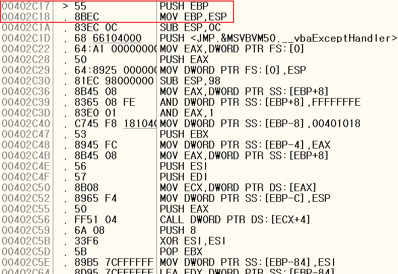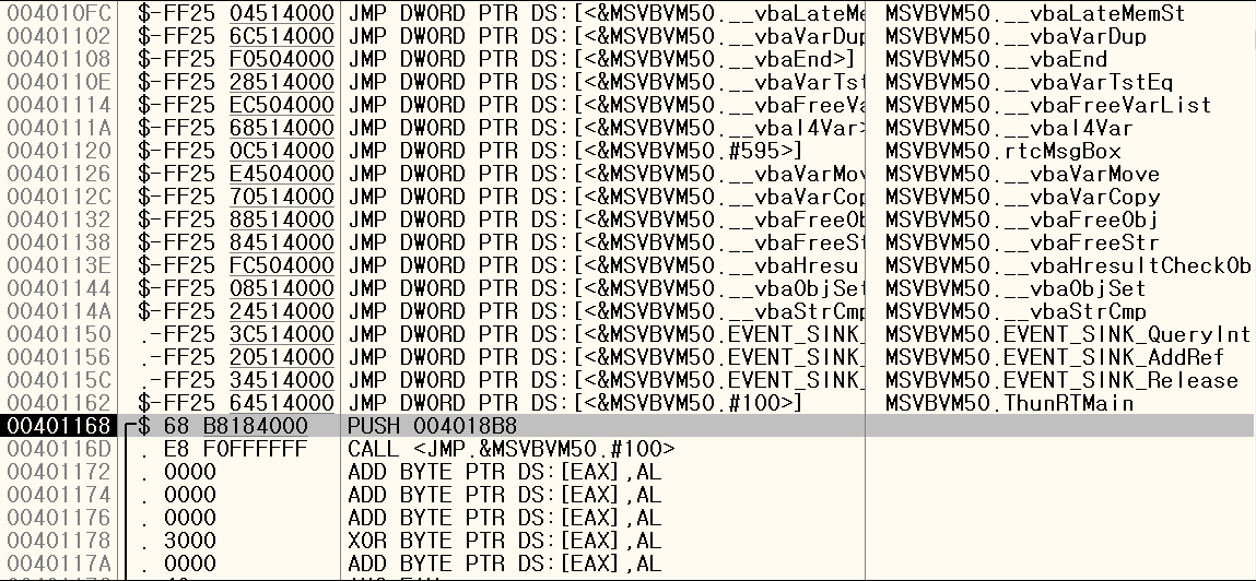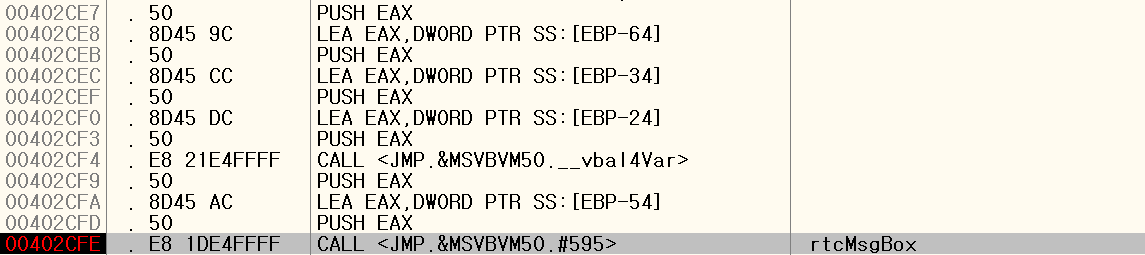 해당 코드 영역은 MSVBVM50.dll 모듈 영역입니다
