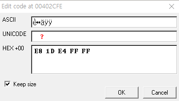 402CFE 주소의 명령어를 바이트로 본다면 5바이트를 사용하고 있습니다