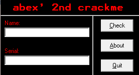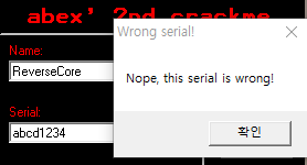 먼저 abex' crackme#2를 실행시켰습니다