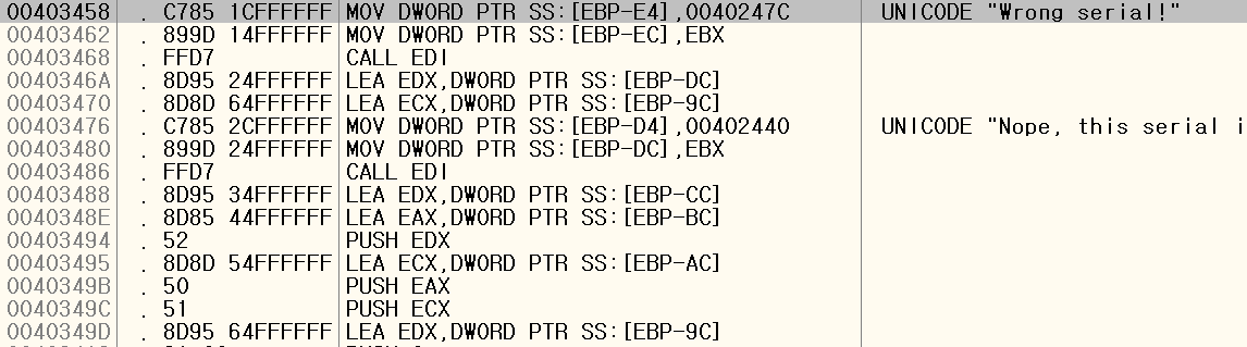 Wrong Serial 문자열이 존재하는 주소인 403458로 이동해봤습니다