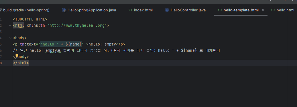 main - resources - templates - hello.html 로 저장되어 있어야 한다.