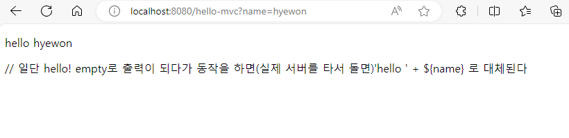 예를 들어, 클라이언트가 "/hell-mvc?name=John"과 같은 요청을 보냈다면,