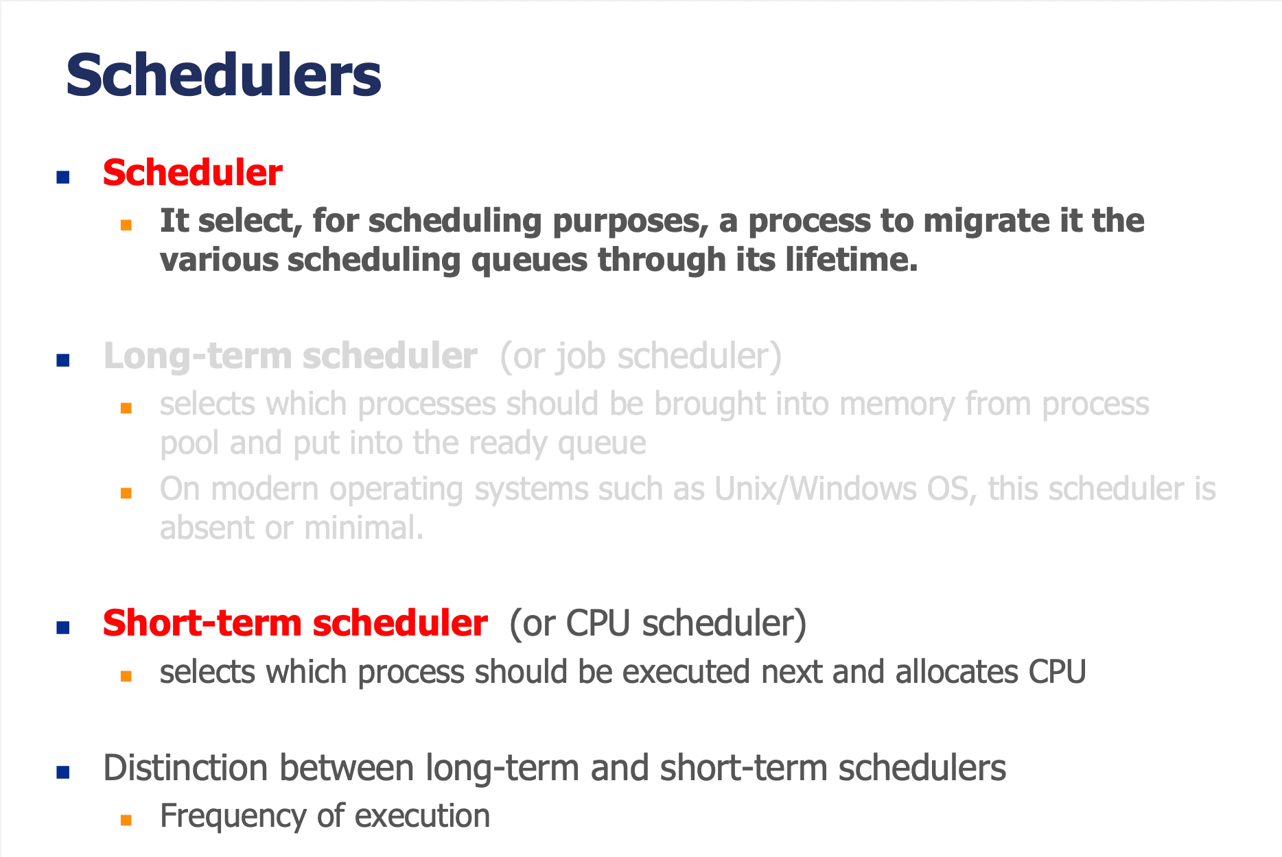 | Short-term Scheduler | CPU에 실행할 프로세스 선택 |