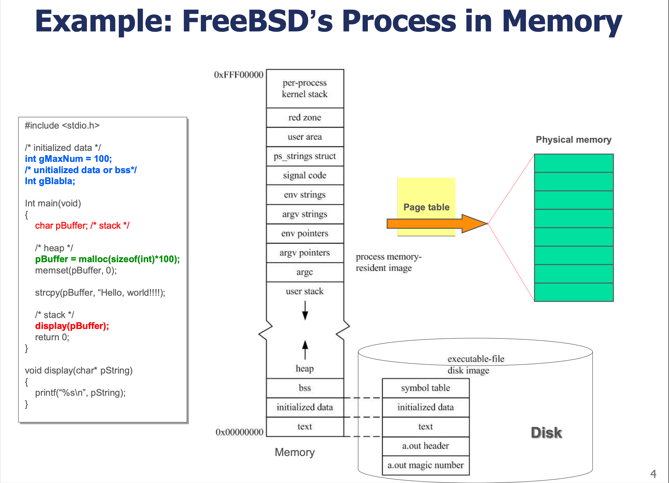 우측: 프로세스의 메모리 레이아웃(주소 공간)