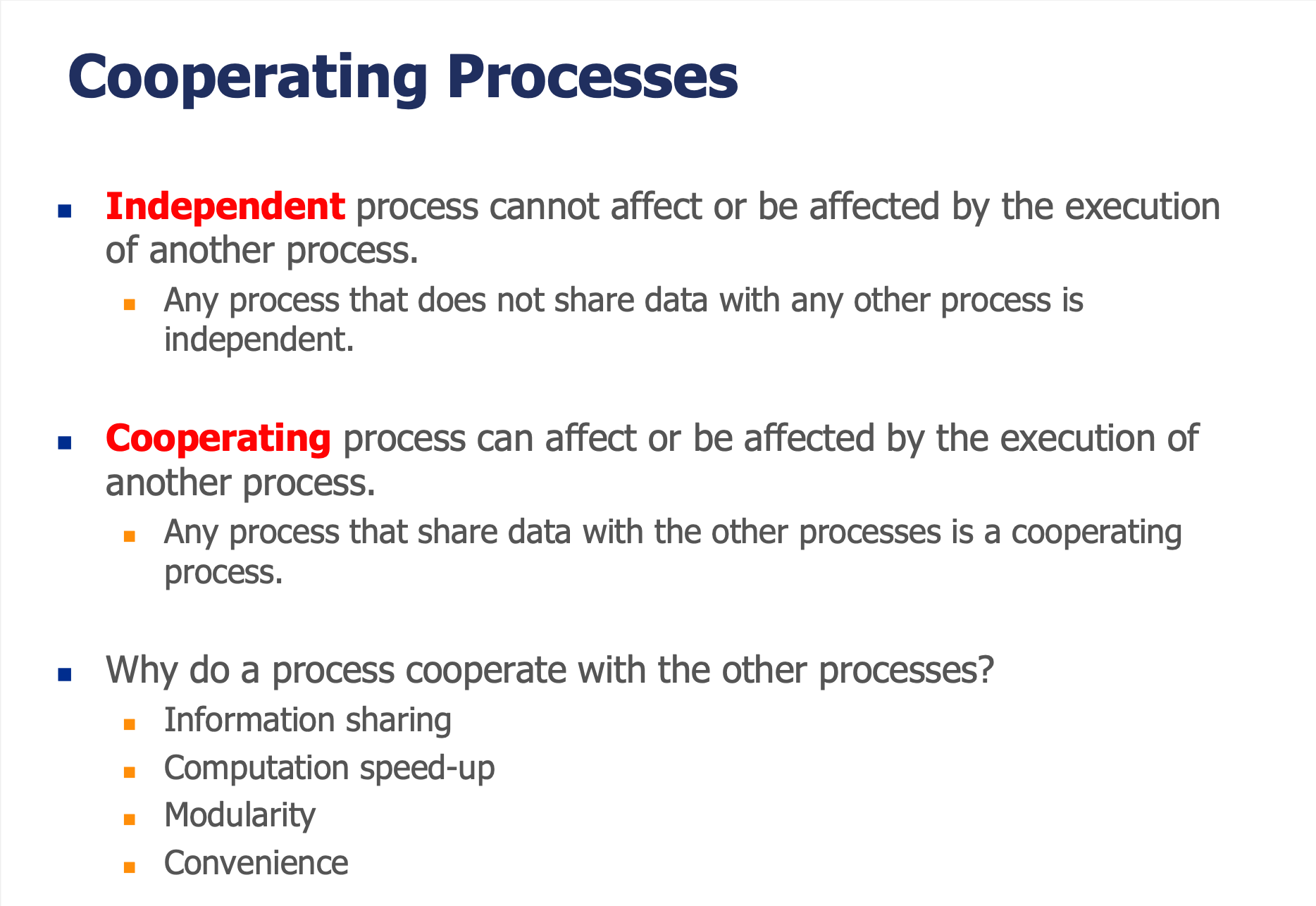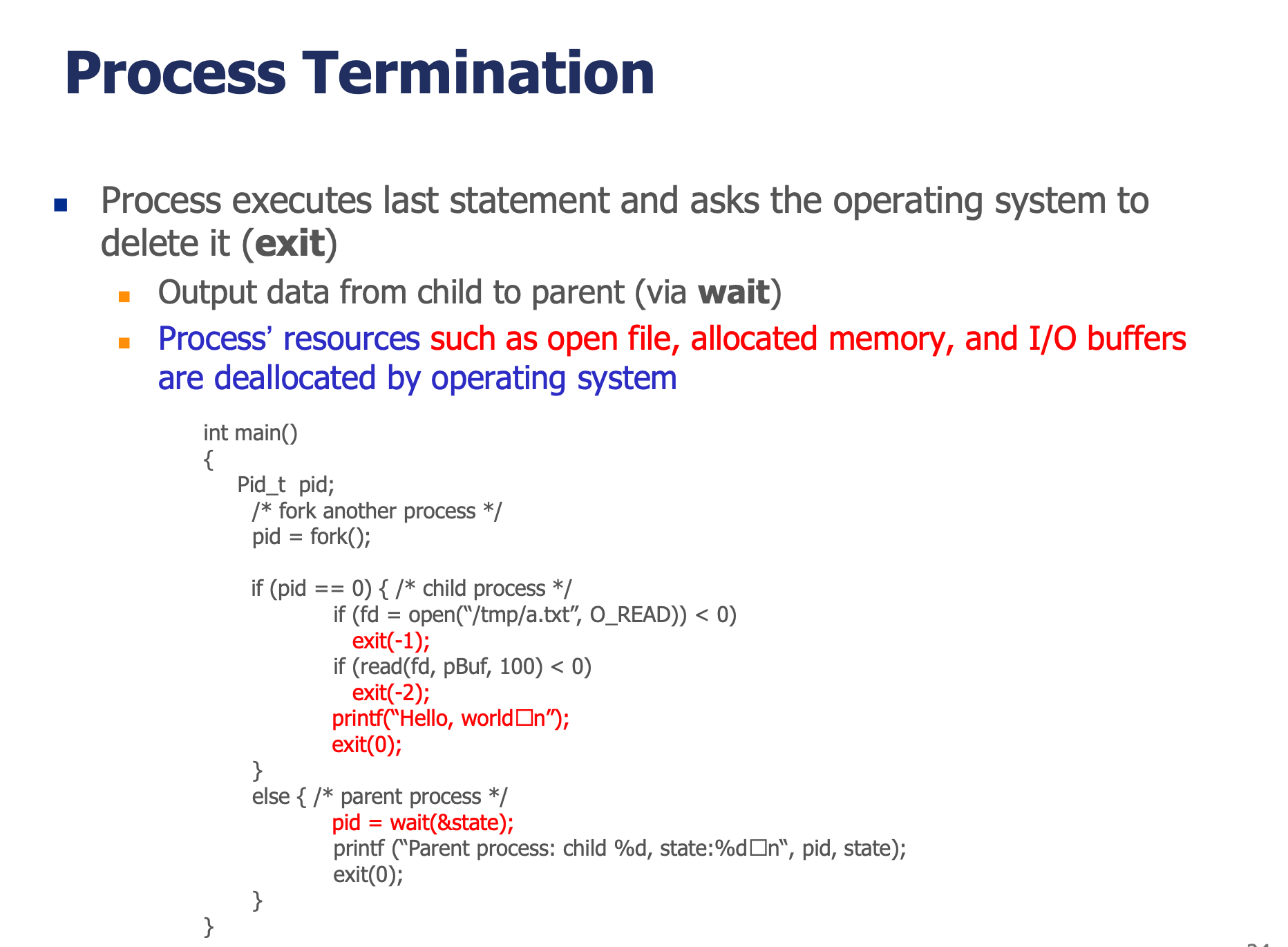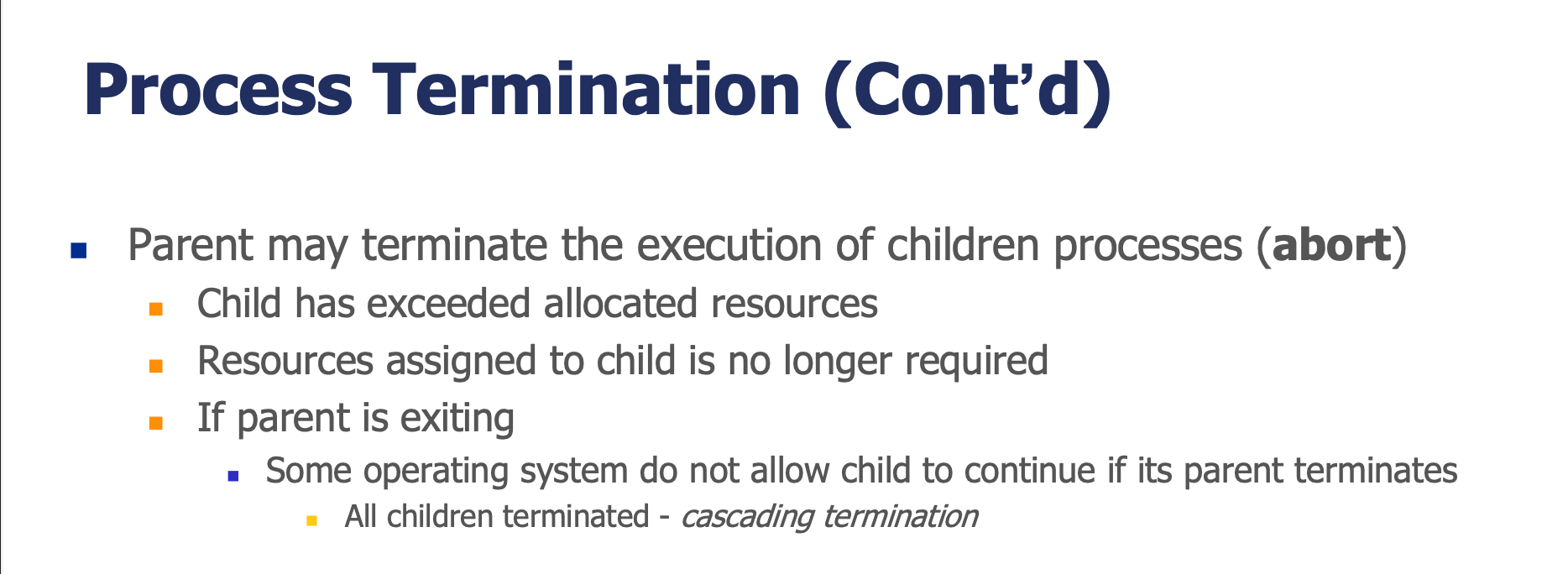 | Cascading Termination | 부모 종료 시 모든 자식도 종료 |