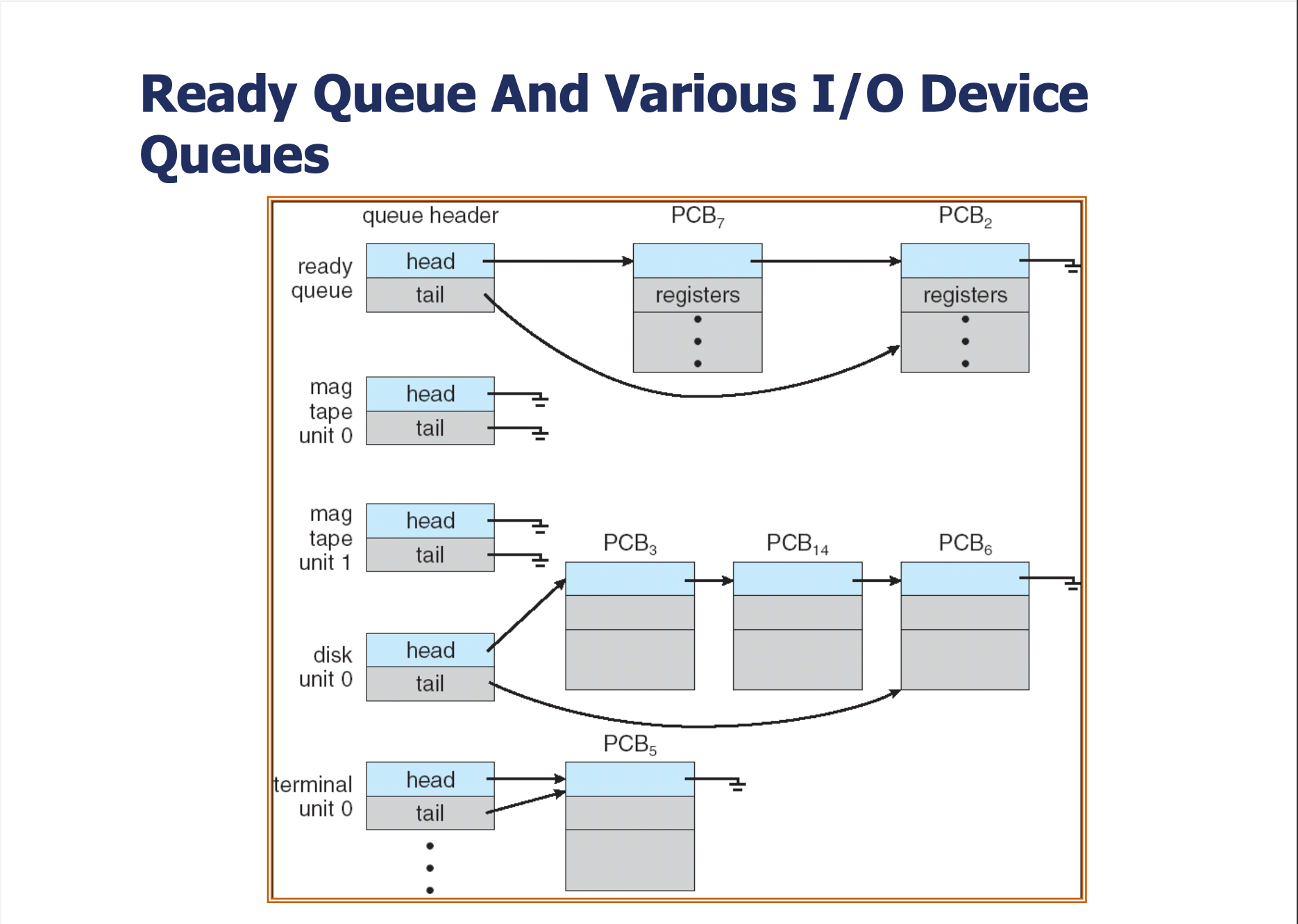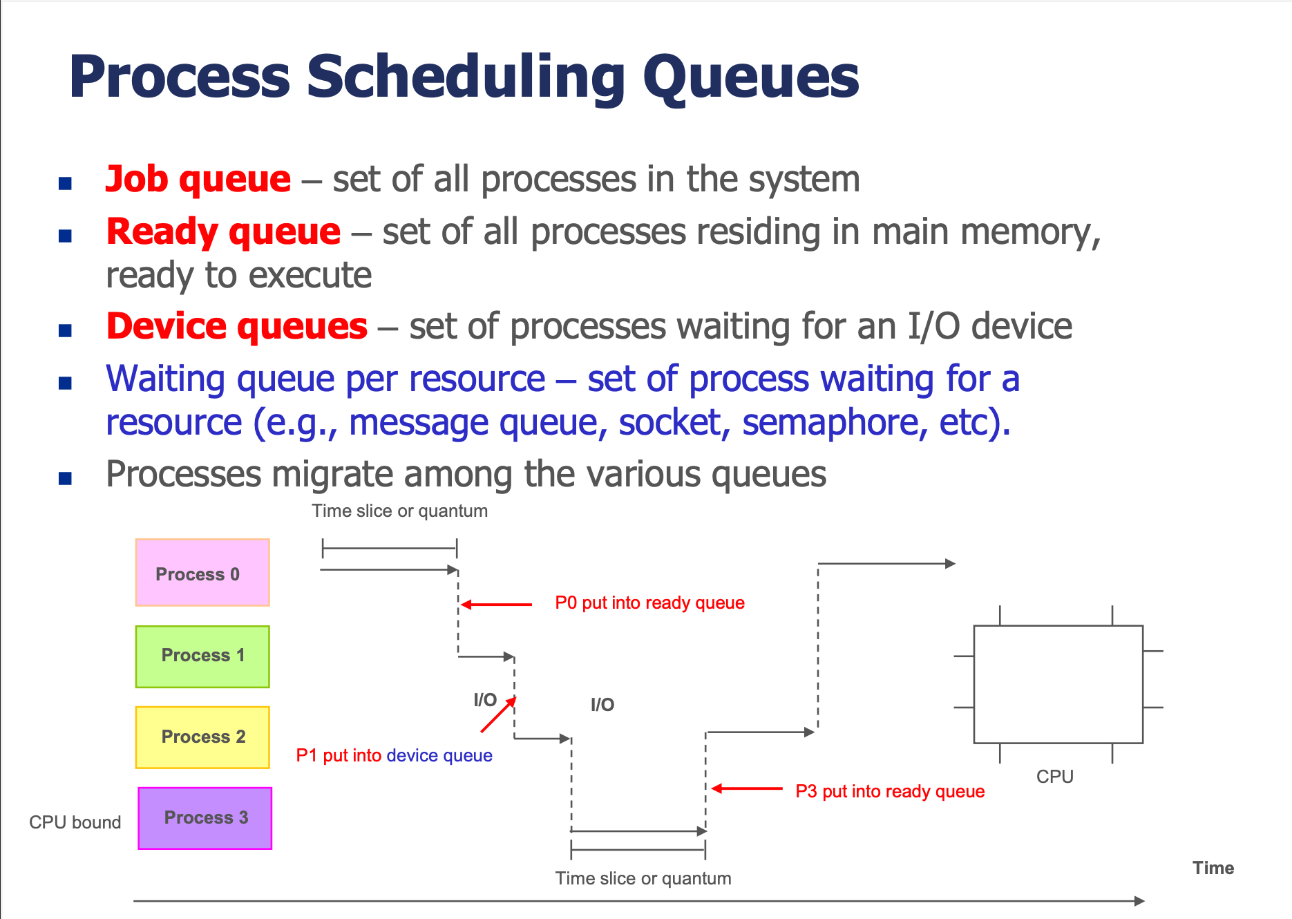 | Device Queue | I/O 장치를 기다리는 프로세스들의 큐 |