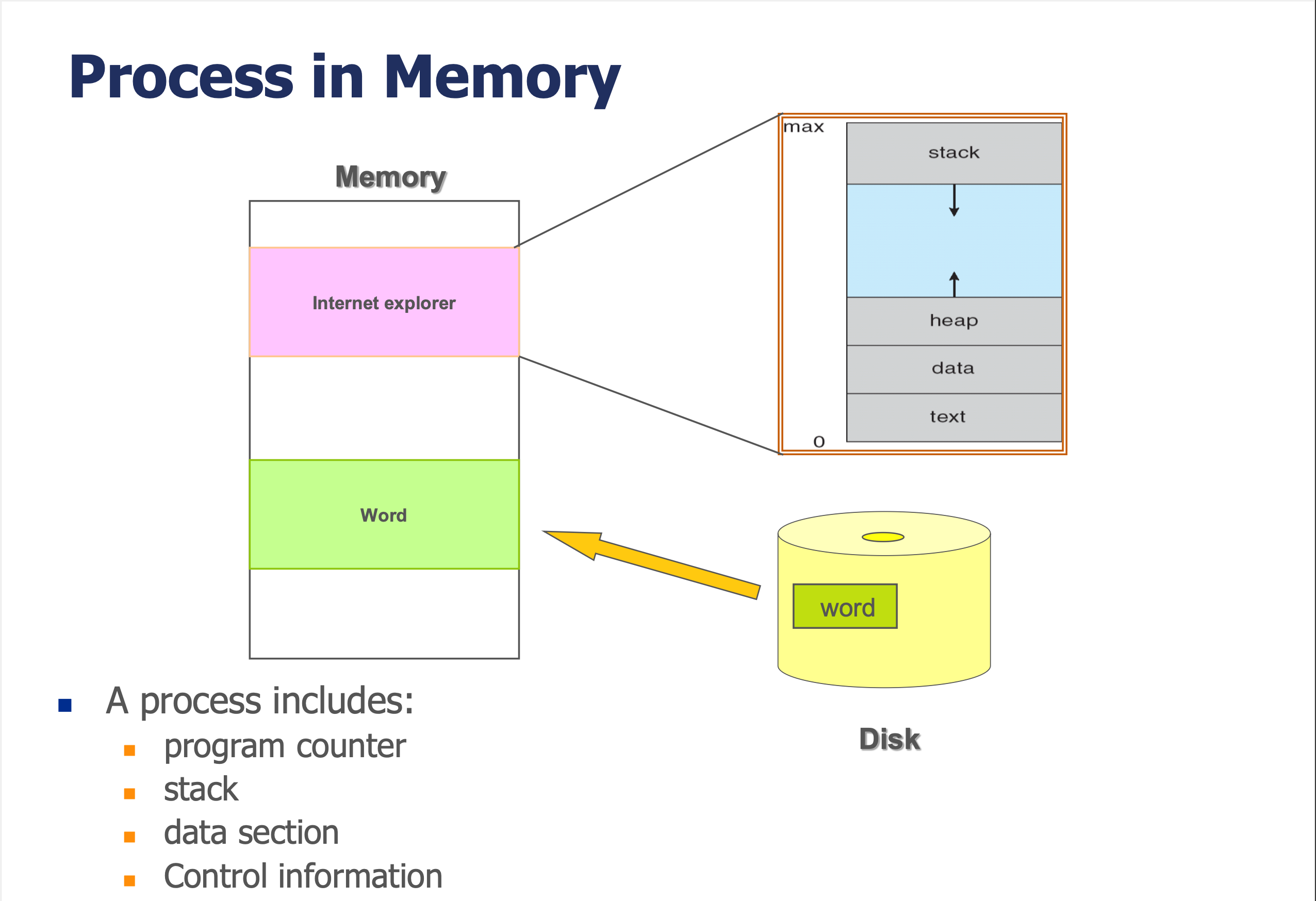 프로그램은 디스크에 가만히 저장되어 있는 파일일 뿐이다. 아직 실행되지 않은 상태이다.