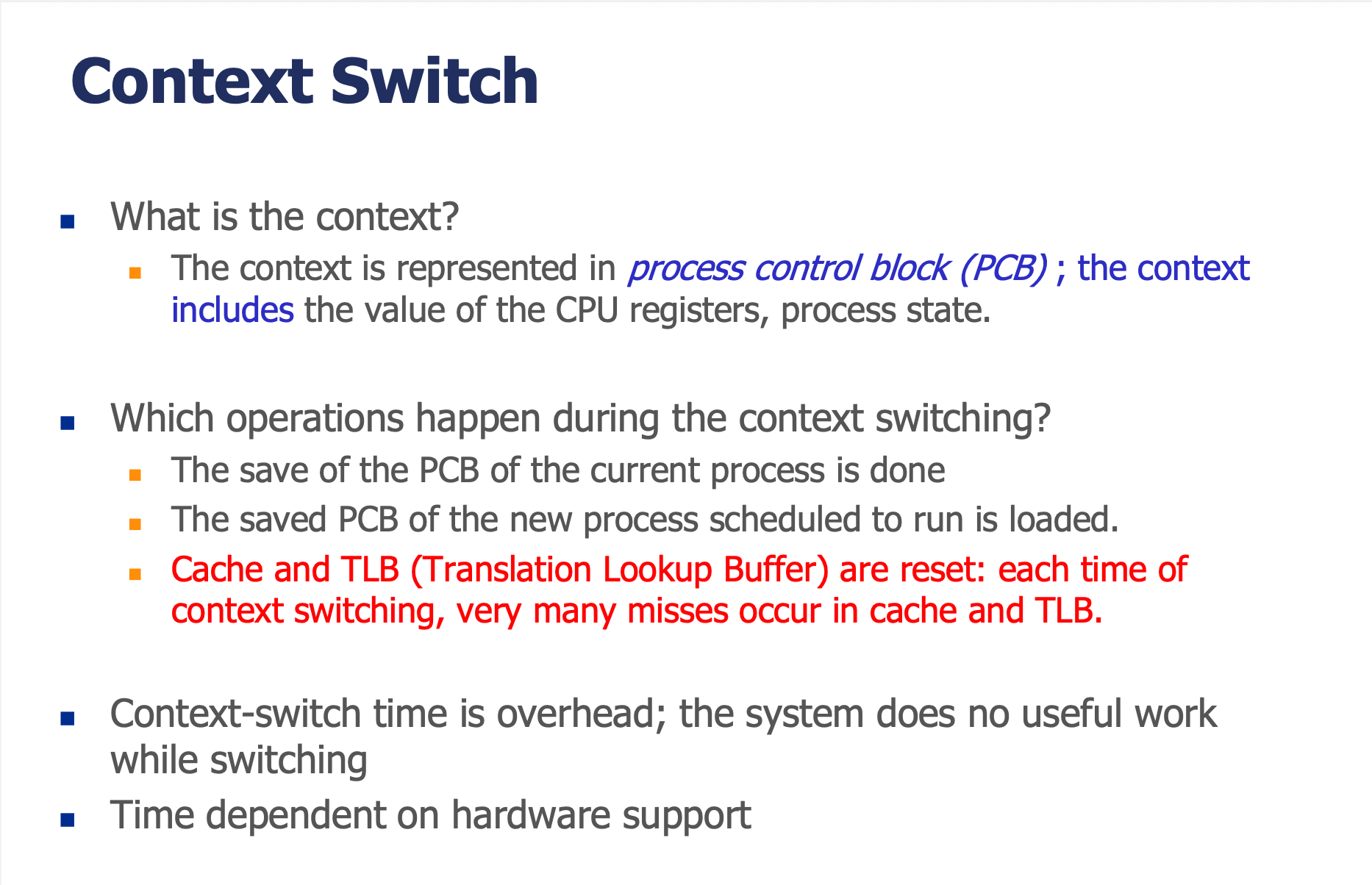 | Context Switch | 현재 프로세스의 PCB 저장 + 새 프로세스의 PCB 로드 |