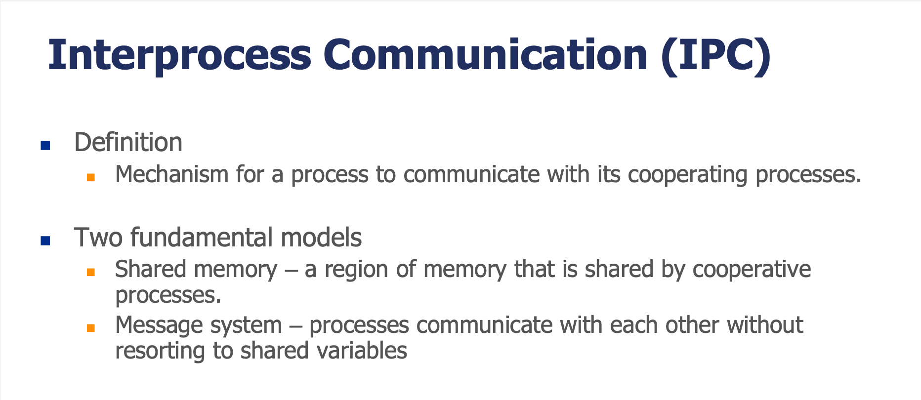 | Message Passing | send/receive로 메시지를 교환하는 IPC |