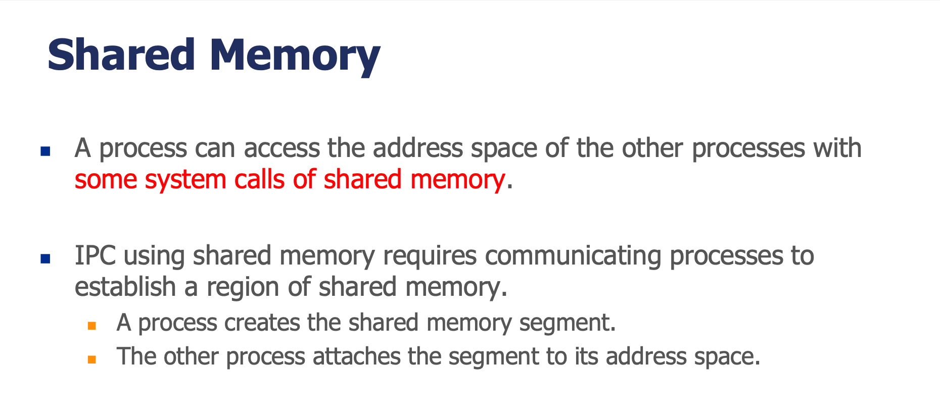 | Shared Memory | 프로세스들이 공유하는 메모리 영역을 통한 IPC |