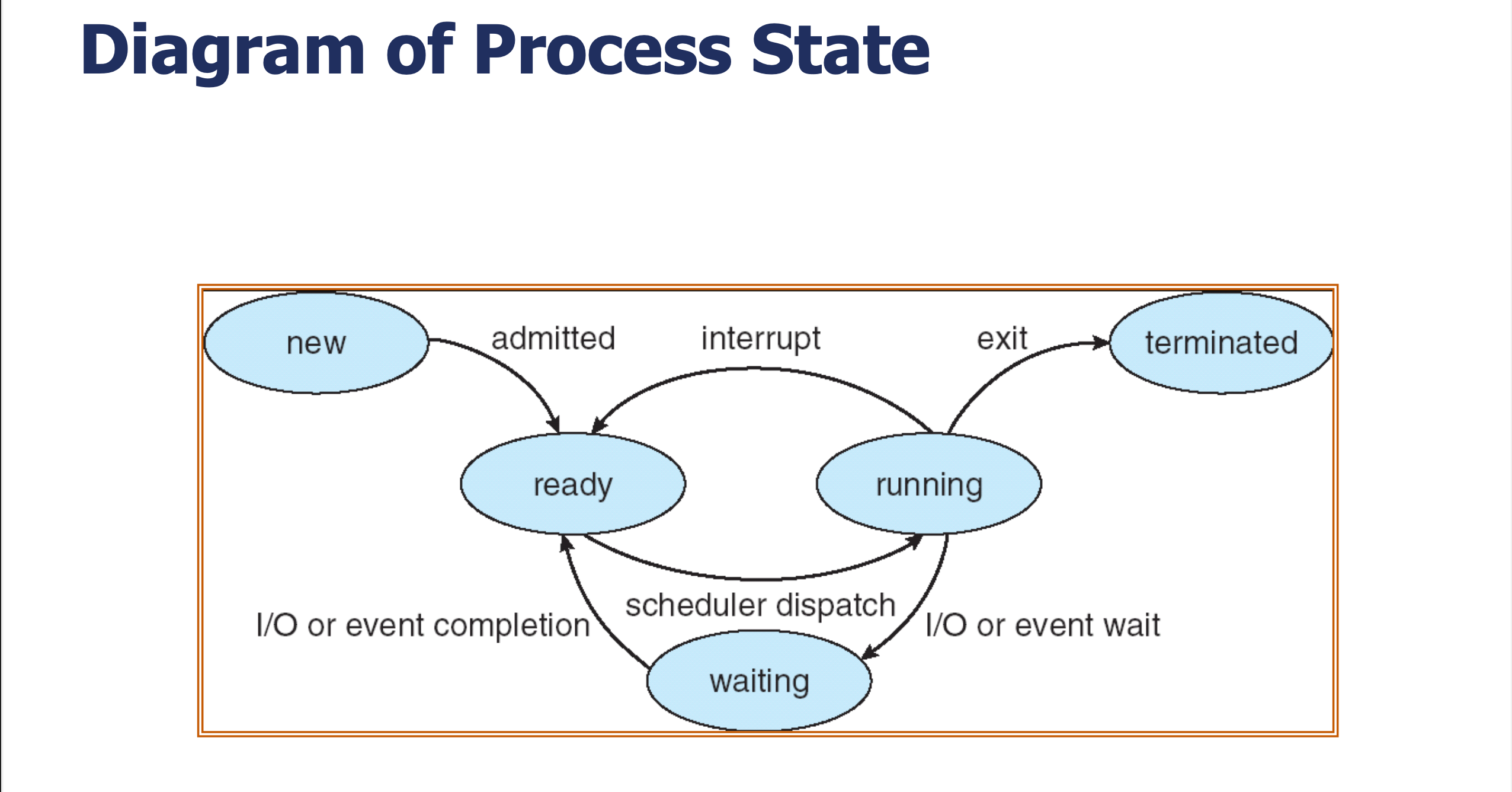 | new → ready | admitted (승인됨) | OS가 프로세스를 승인하여 준비 큐에 넣는다 |