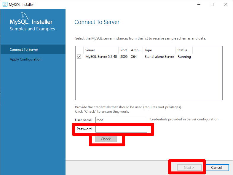 아까 설정한 관리자 비밀번호 입력 후 Check 누른 후 Next 누르기
