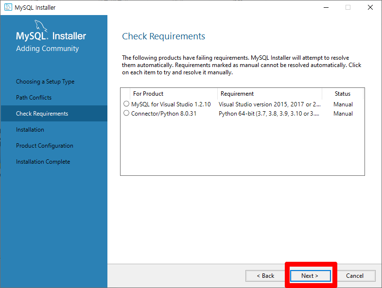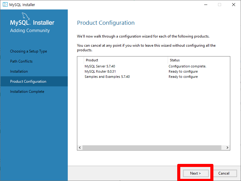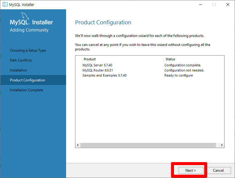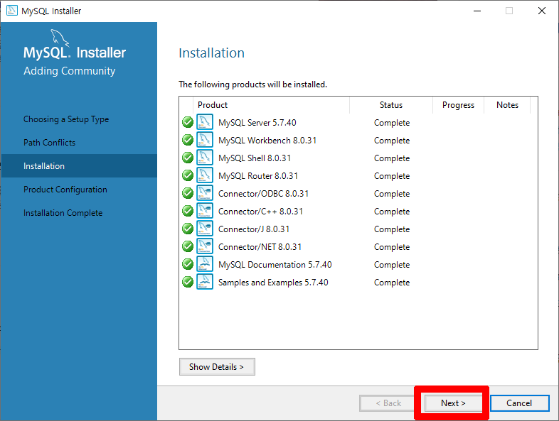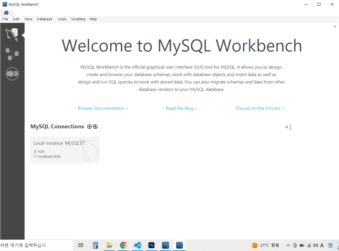 MySQL 프로그램이 잘 켜졌으면 설치가 끝난 것