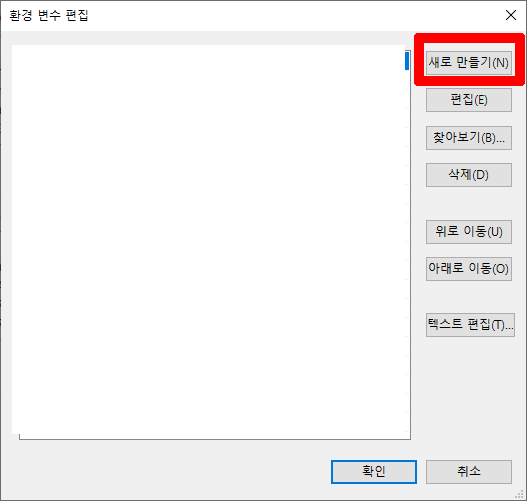 새로 만들기 누른 후 MySQL 설치 경로에 있는 Server의 bin 폴더 위치 추가하기