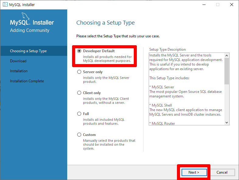 MySQL Community Downloads 에서 MySQL Installer for Windows 선택