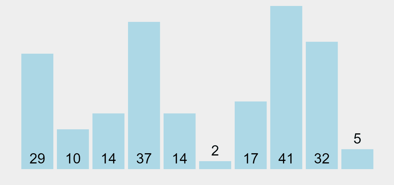 버블정렬은 선택정렬과 유사한 개념으로 서로 인접한 두 원소를 검사하여 정렬하는 알고리즘이다.