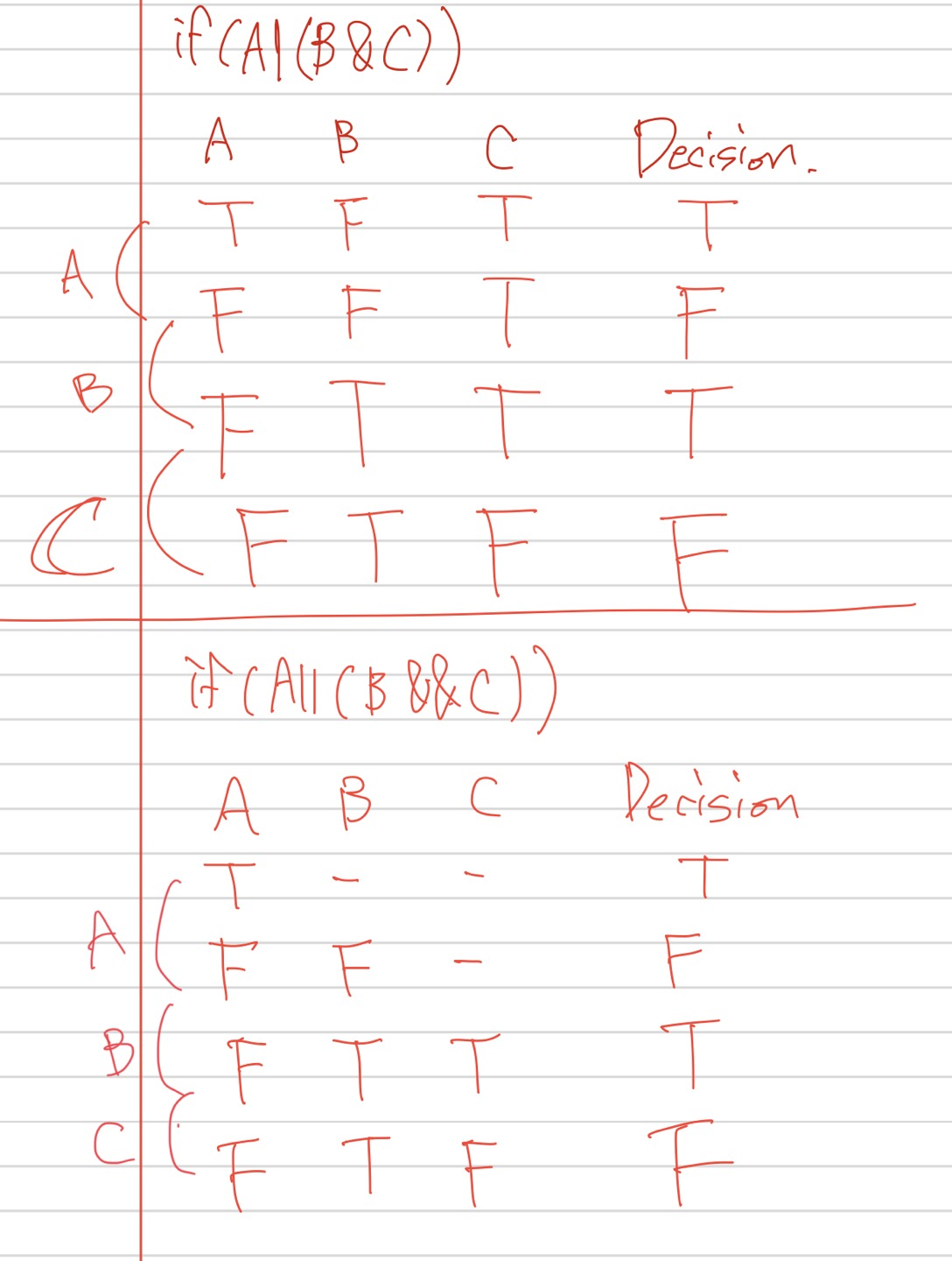 이렇게 하면 100%의 Multiple Condition Coverage를 달성할 수 있게된다.
