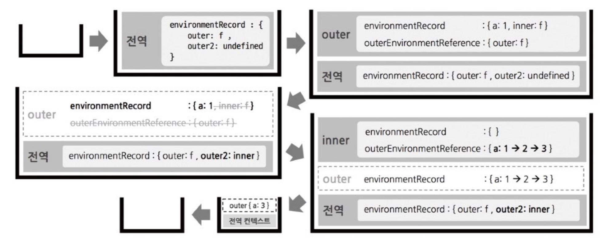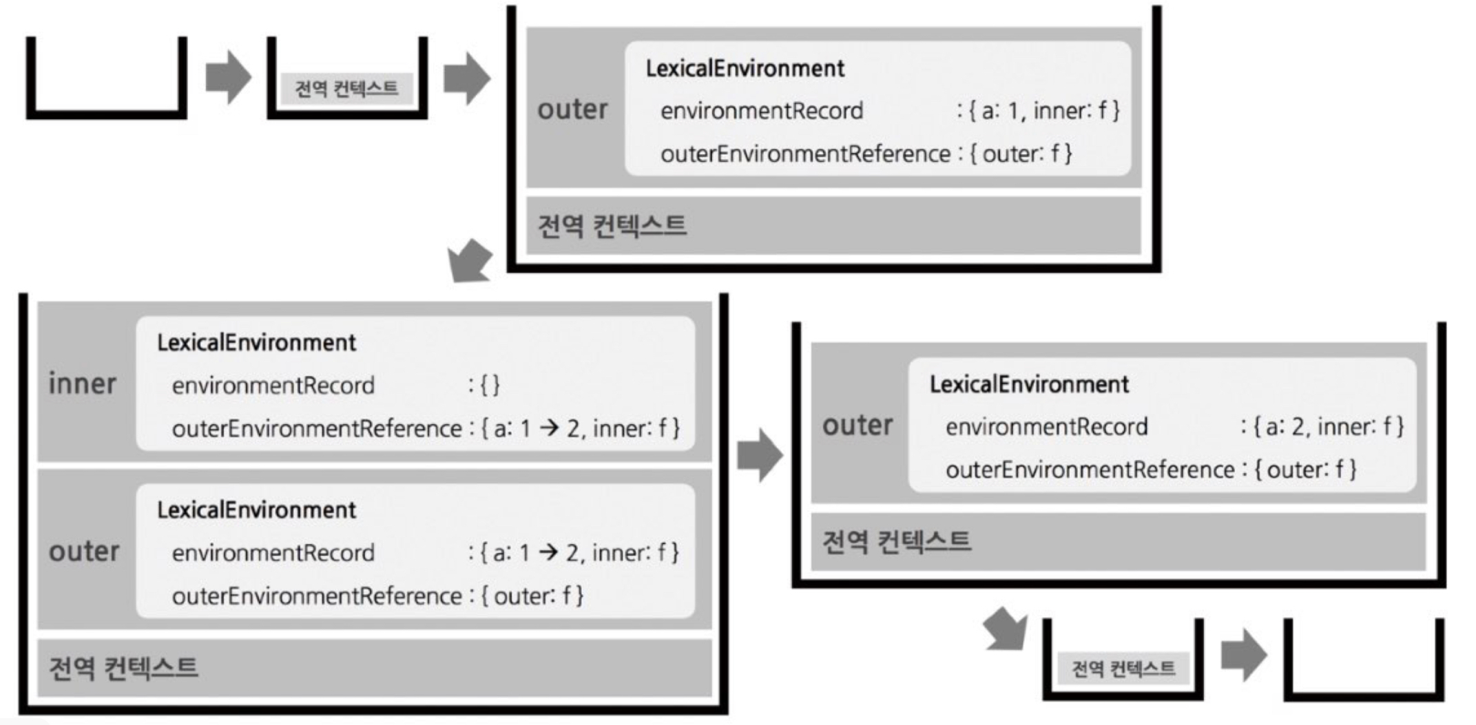 outer 함수의 실행 컨텍스트가 종료될 때 outer2 변수는 outer의 실행 결과인 inner 함수를 참조하게 된다.