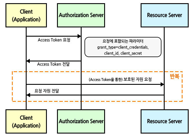 클라이언트의 자격증명 만으로 Access Token을 획득하는 방식