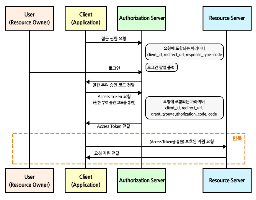 - Authorizaiton Code는 권한 서버에서 제공하는 API를 통해 Access Token으로 교환