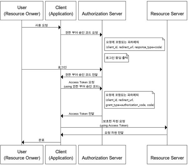 권한 부여 승인을 위해 자체 생성한 Authorization Code을 전달하는 방식 (기본)
